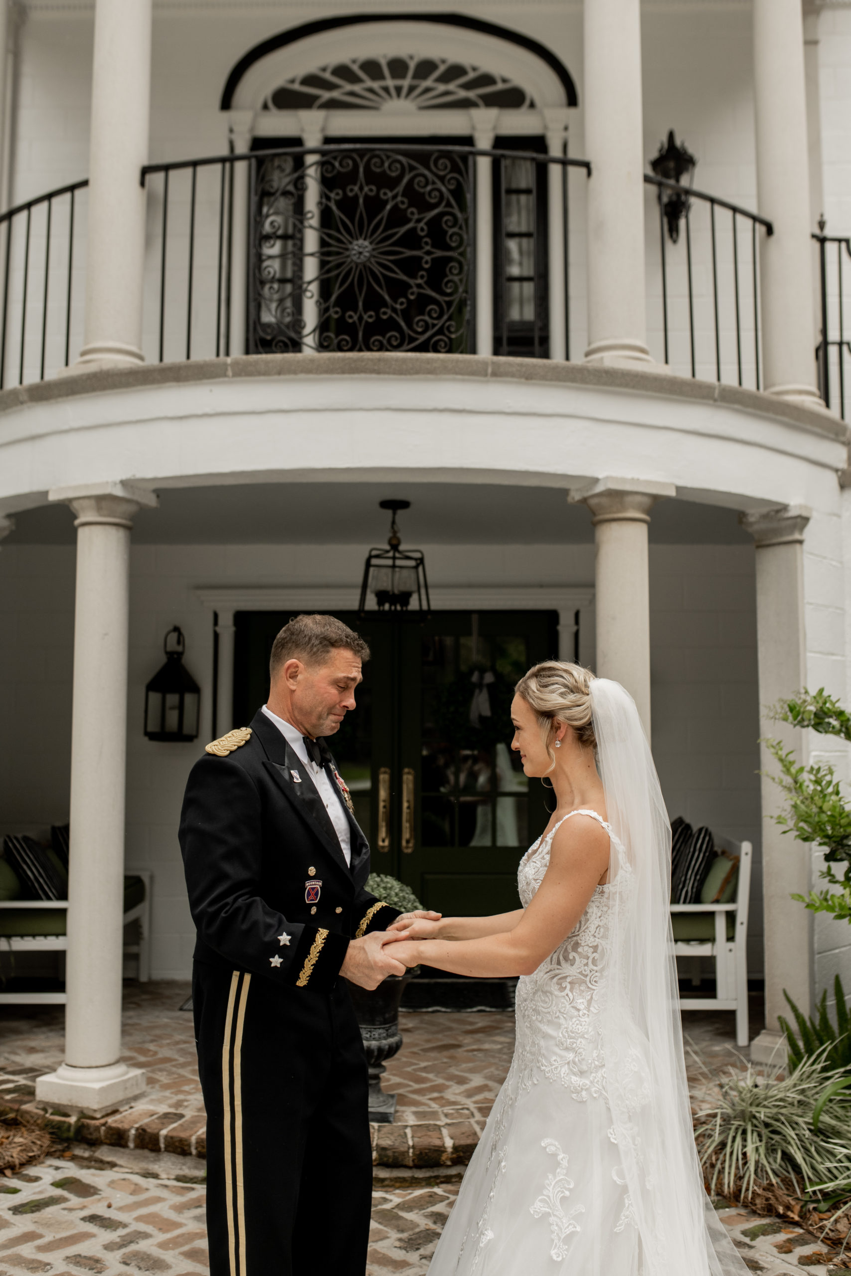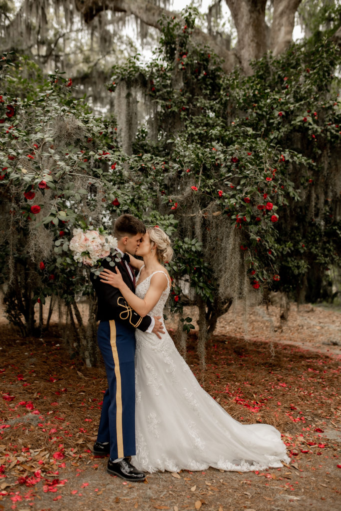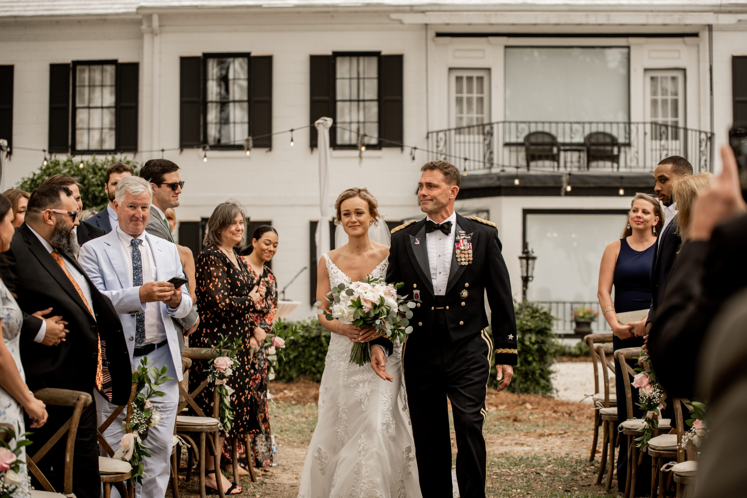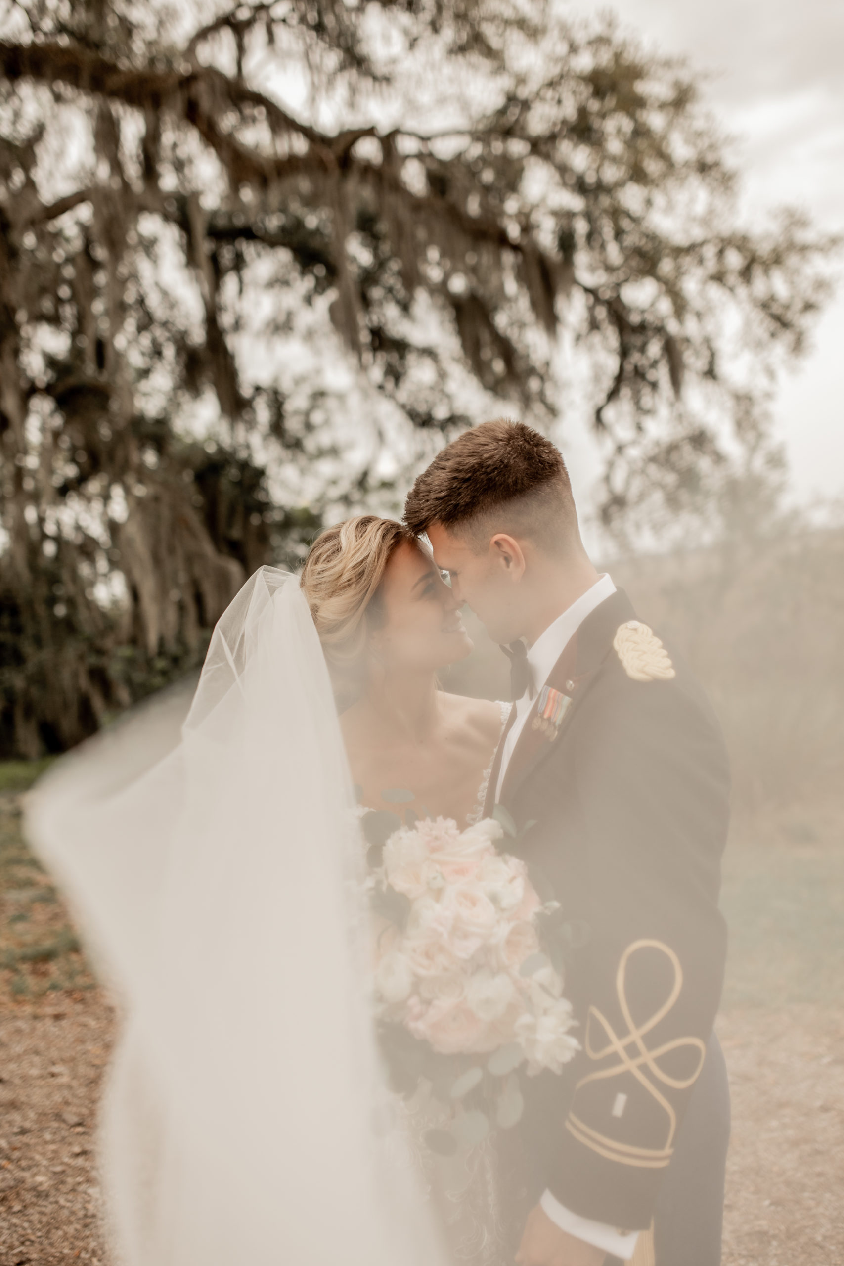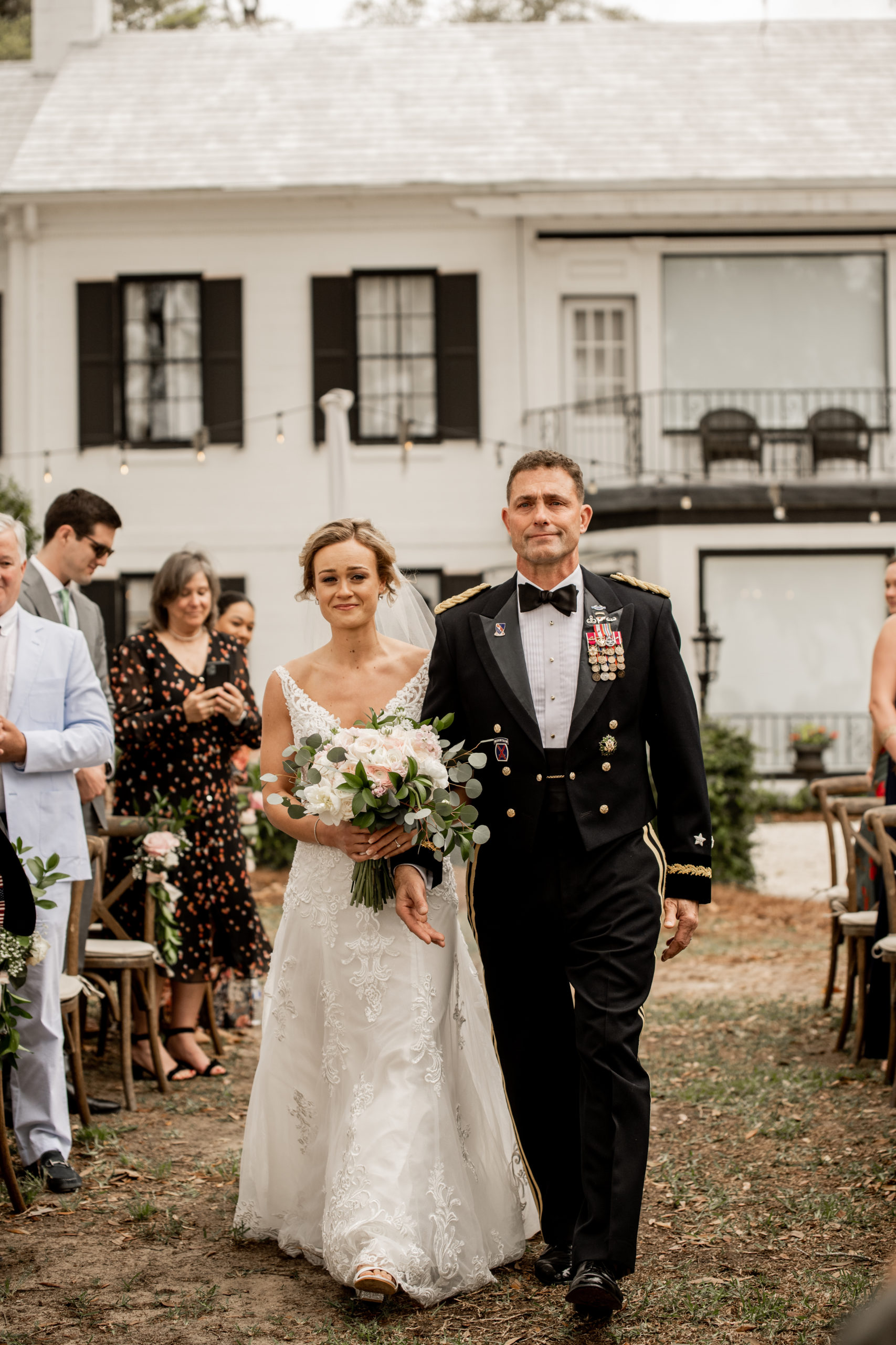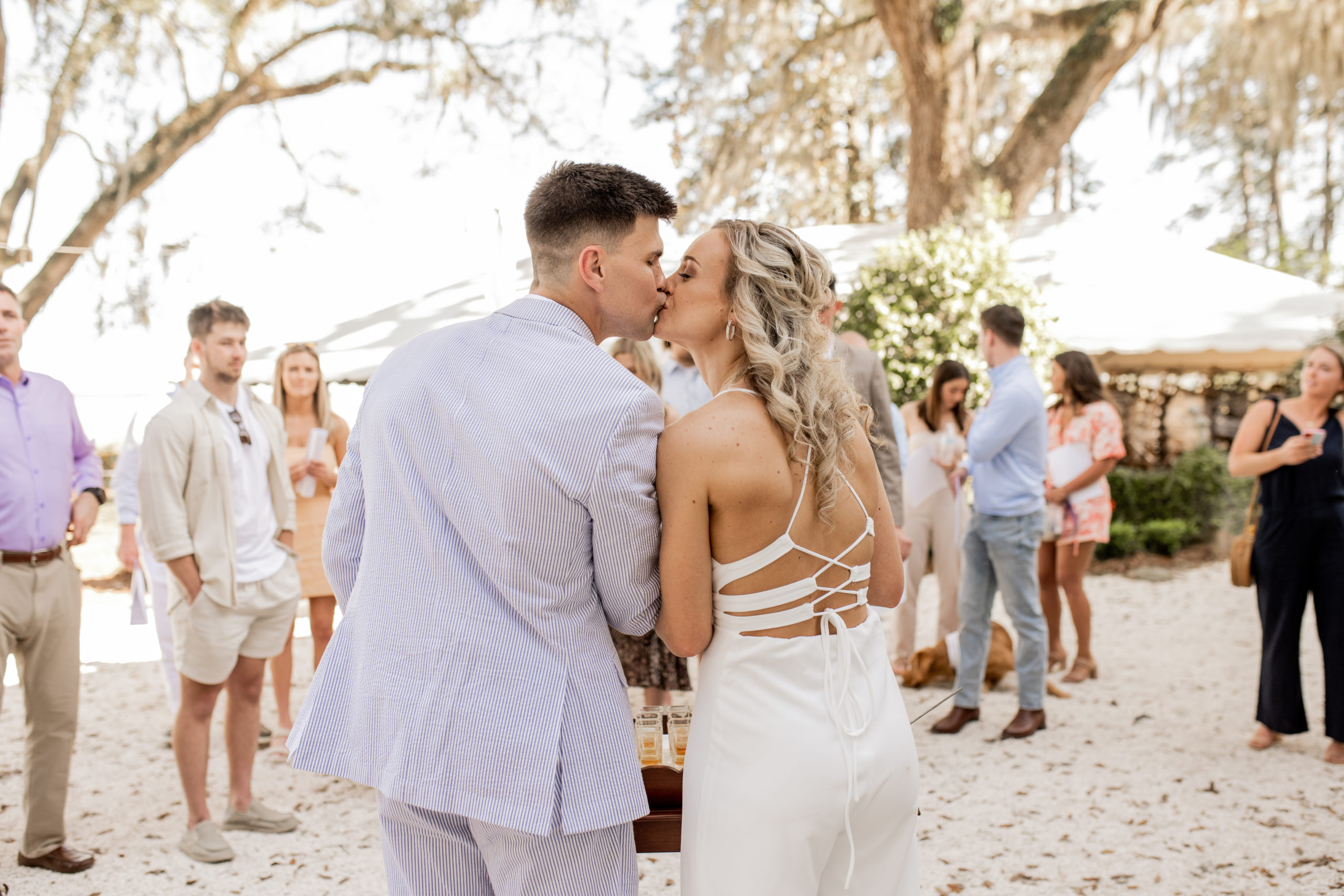 With a beautiful backdrop of the marsh, Ashley and Forrest tied the knot! It was a very emotional ceremony, but the bride’s brother actually cried more than anyone else! After sharing their personal, loving vows, the newlyweds exited through a traditional military sword arch (plus a sword tap on the booty!)