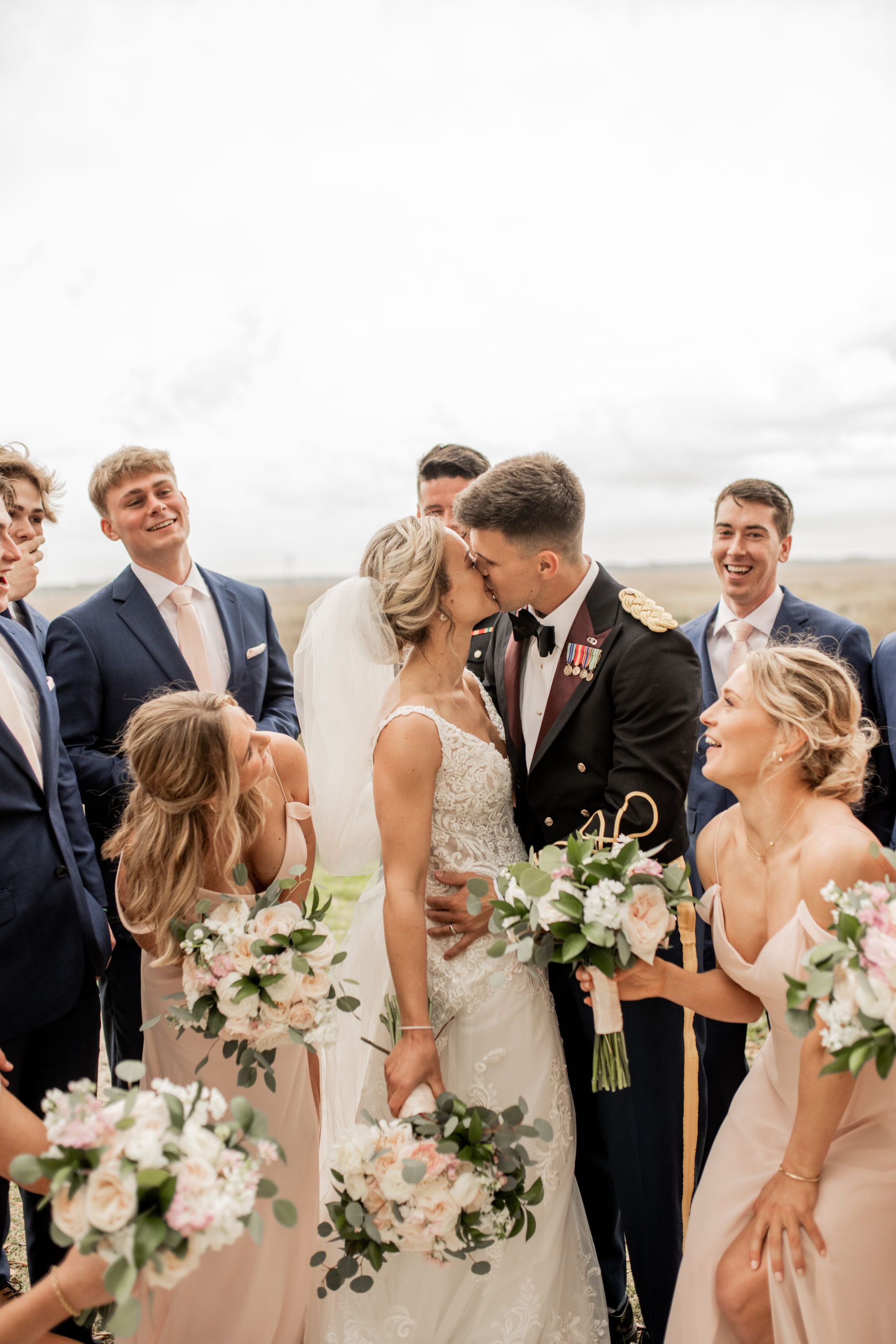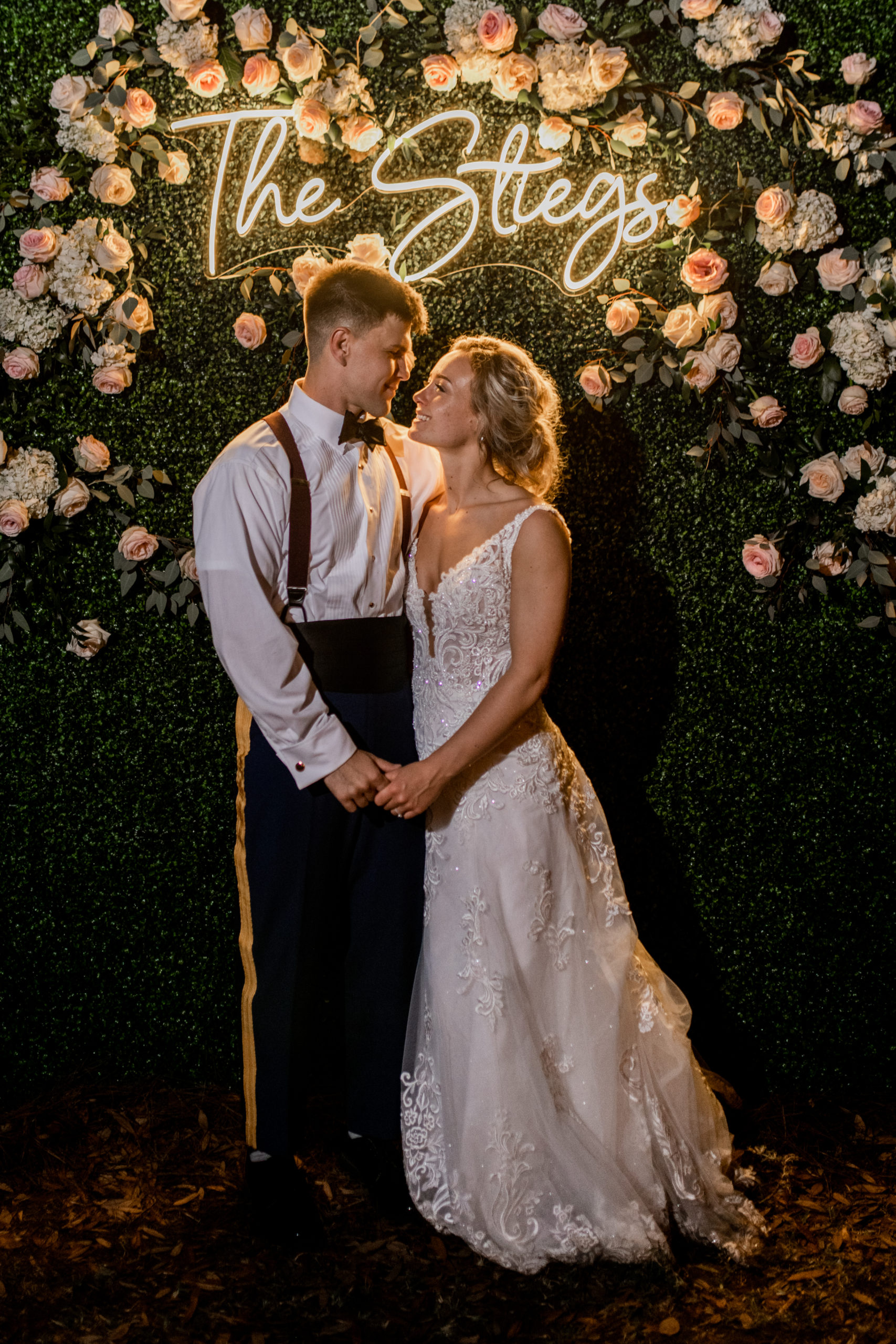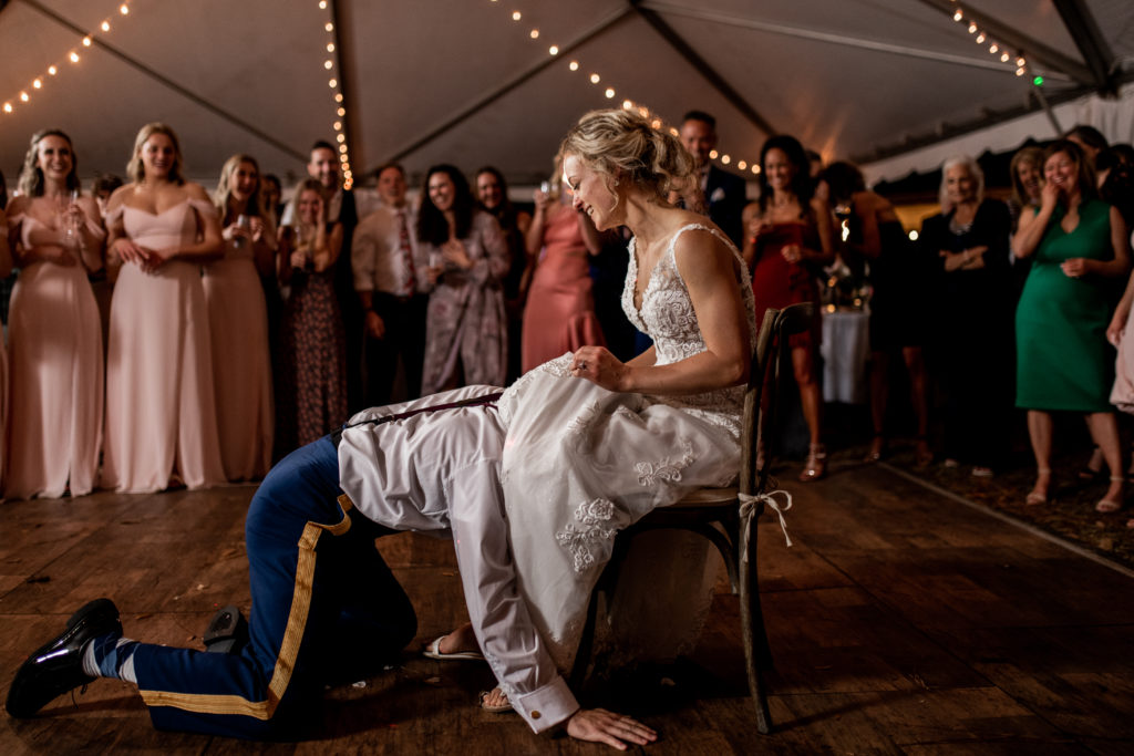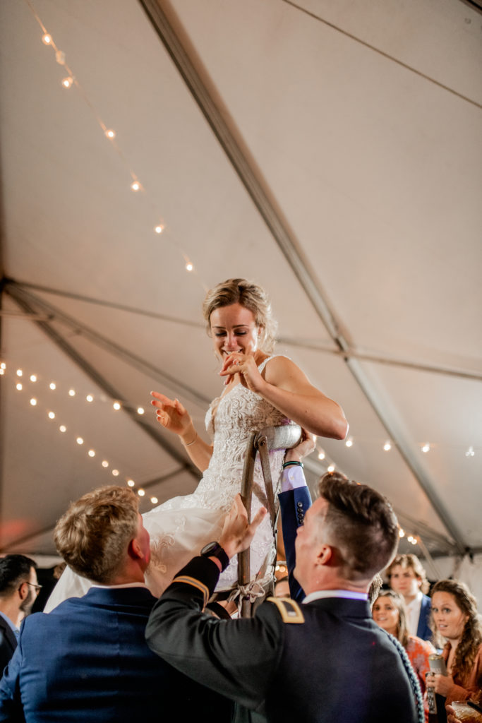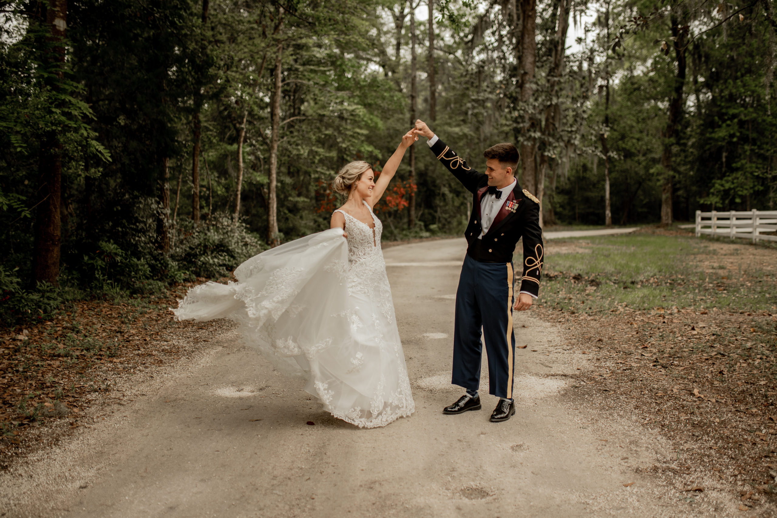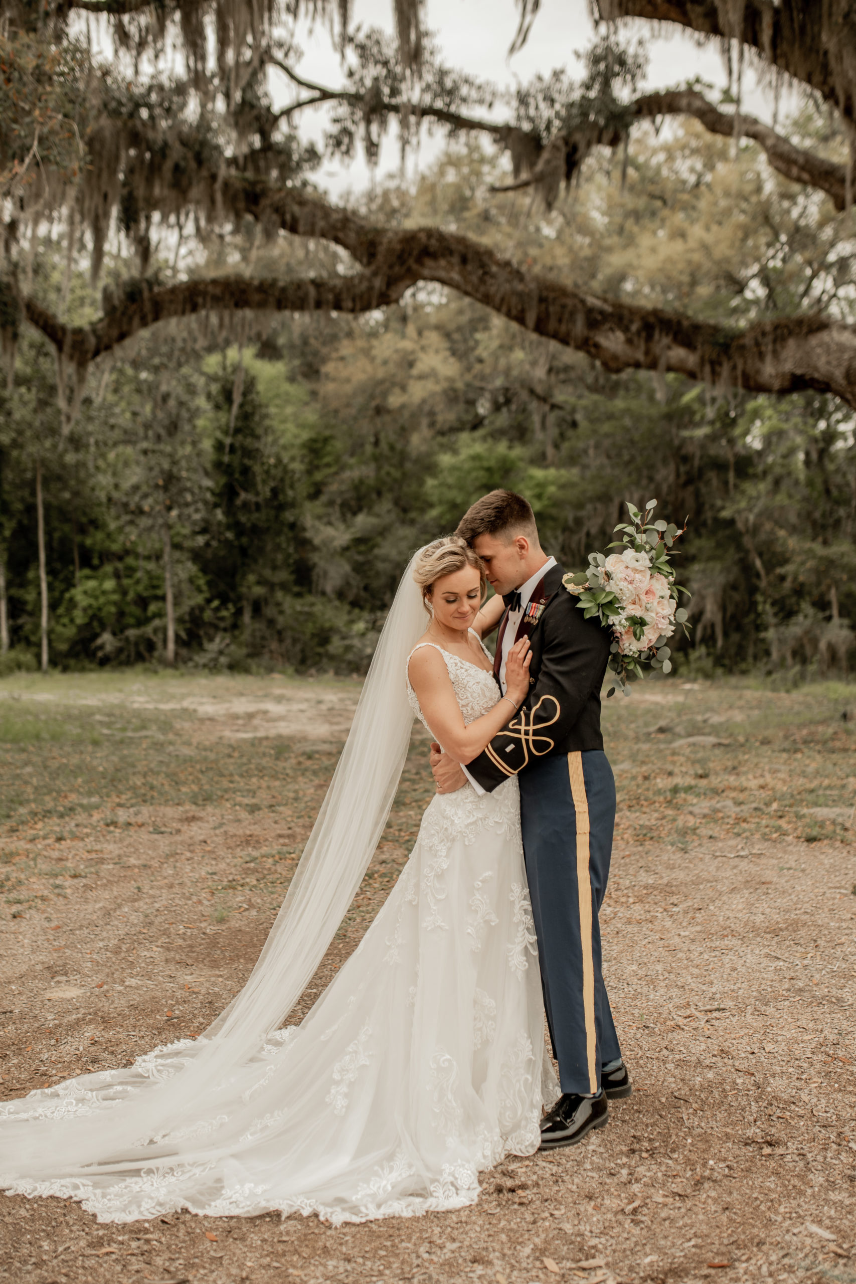 With a beautiful backdrop of the marsh, Ashley and Forrest tied the knot! It was a very emotional ceremony, but the bride’s brother actually cried more than anyone else! After sharing their personal, loving vows, the newlyweds exited through a traditional military sword arch (plus a sword tap on the booty!)