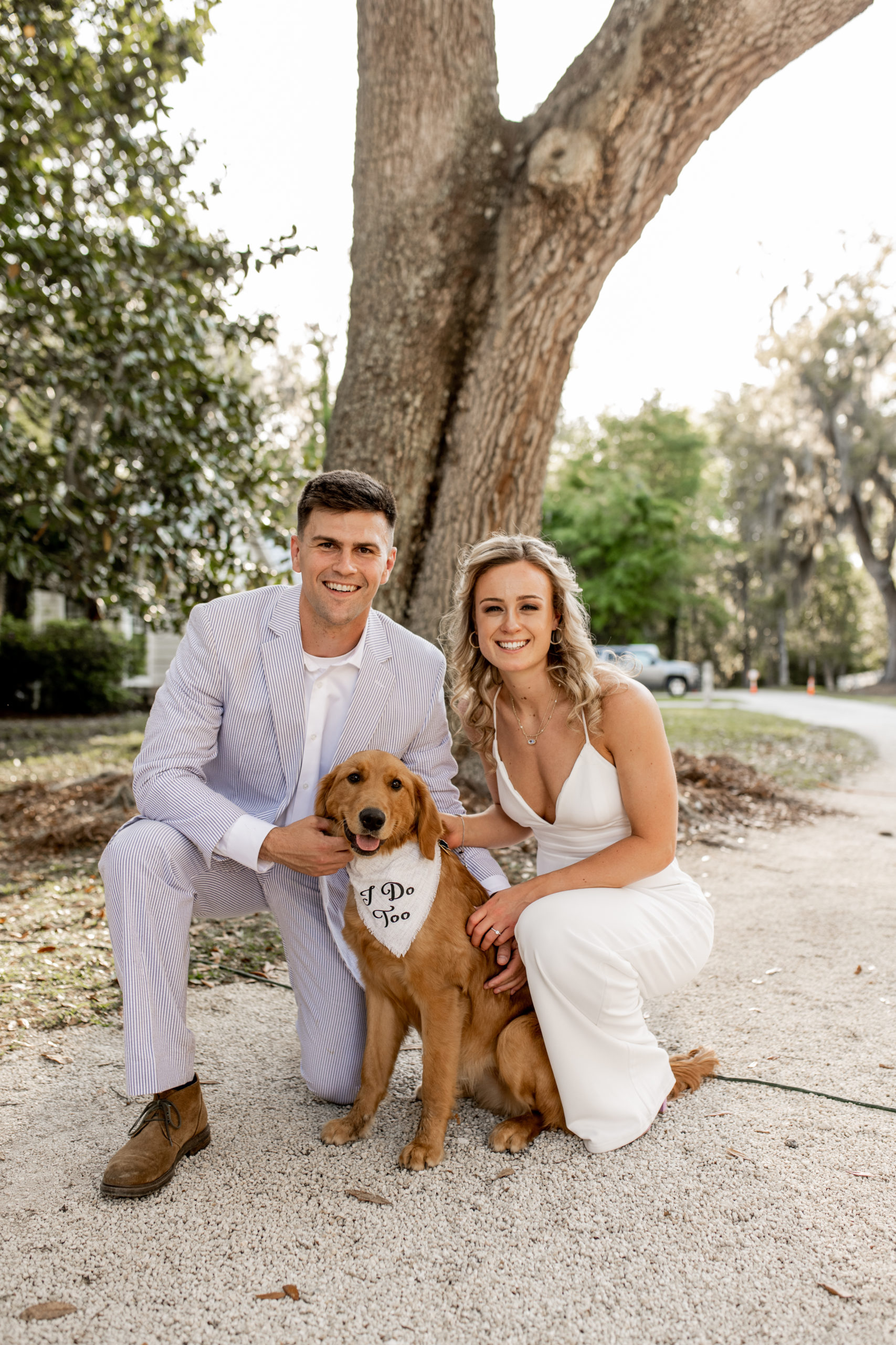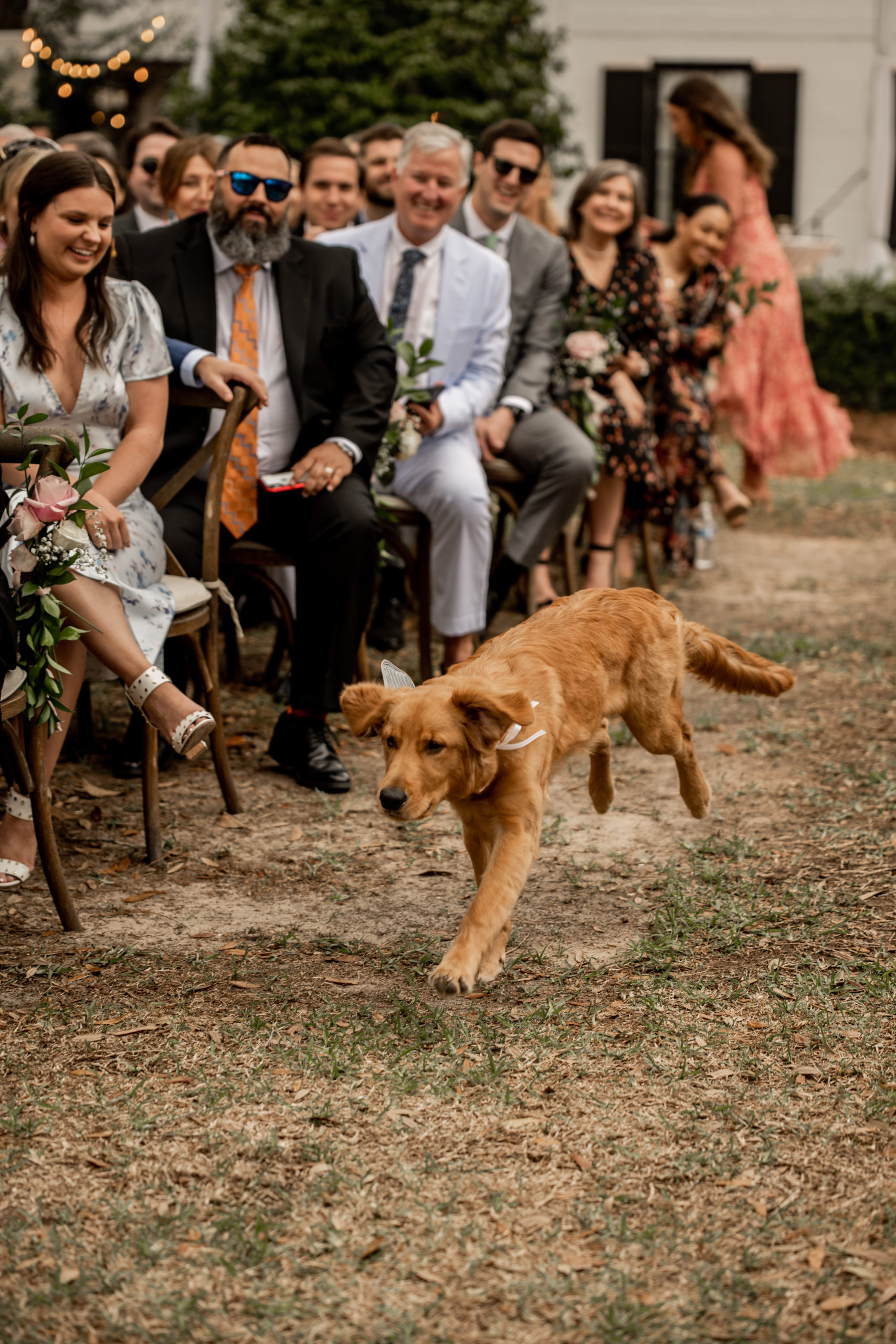 We took bridal party photos separately before the ceremony, but now we were able to do the full wedding party as well as the family formals. As we explored the grounds for bride and groom portraits, their dog, Charlie May,  came along for a few photos as well. This couple really love their dog, so she was a big part of the whole celebration.