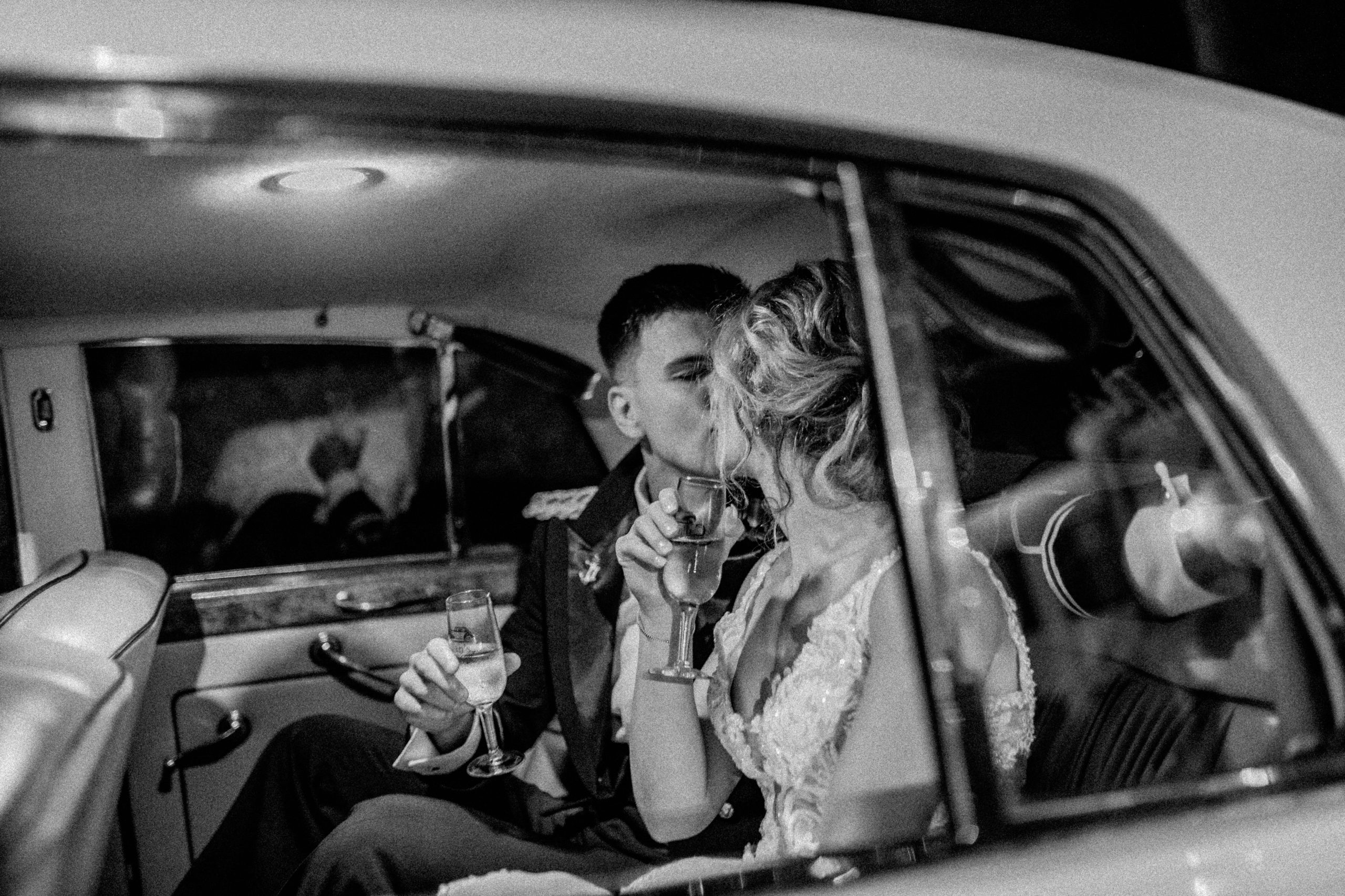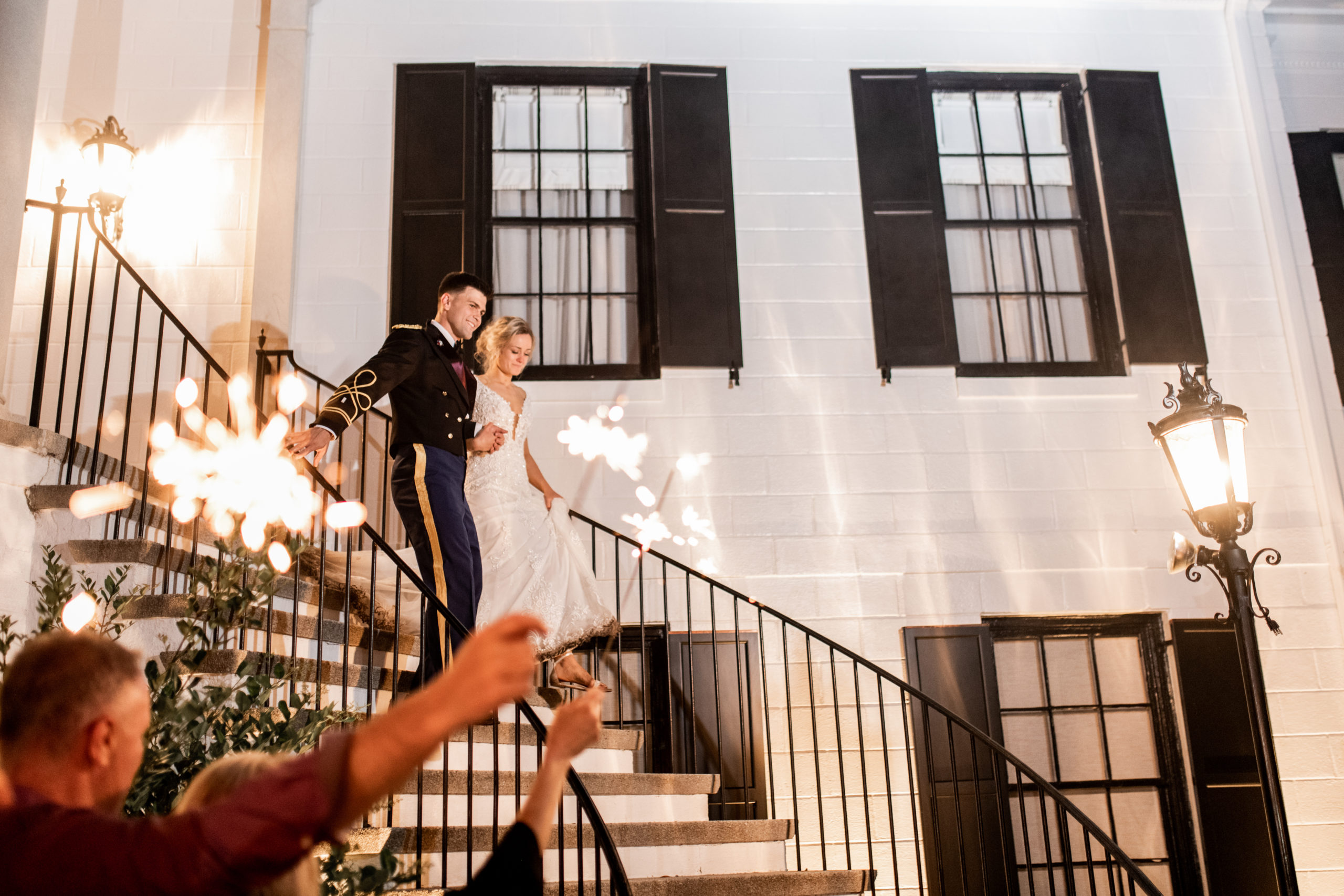 The party went well into the evening, and when it was truly dark outside it was time for the big send-off. Forrest and Ashley kissed on a gorgeous balcony before descending the staircase and through an arch of sparklers to a really cool vintage getaway car that took them away for their honeymoon.