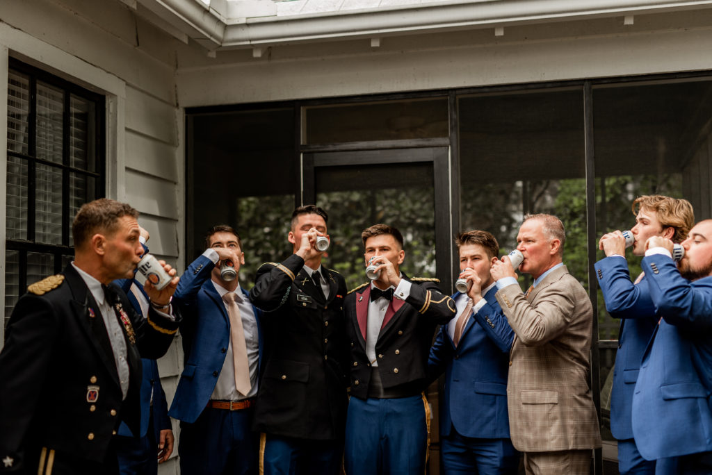While the ladies toasted with champagne, the gentlemen opted for some good old fashioned Coors Lite after getting decked out in suits and, for some, formal Army attire.
